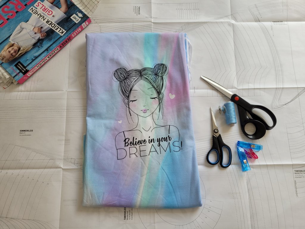 Das Schnittmuster stammt aus dem Buch „Alles Jersey – Kleider nähen für Girls“ von Christina Edelmann, EMF.