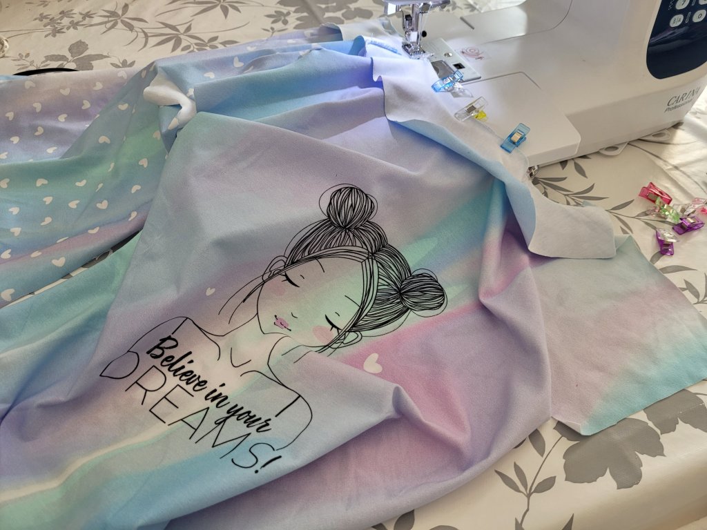 Die Nahtzugabe an Ärmeln und Saum nach innen schlagen und absteppen.